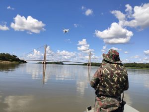 Campo Grande (MS) – Policiais Militares Ambientais de Aparecida do Taboado estão realizando fiscalização preventiva à pesca, durante a operação piracema, nos rios Paranaíba, Barreiro, Santana e afluentes. Os Policiais estão utilizando drones, especialmente para evitar a pesca com petrechos ilegais em pontos em que os cardumes ficam mais vulneráveis à pesca predatória. O uso desses aparelhos é importante na fiscalização na região, em virtude de que muitos pescadores que praticam pesca predatória são informados via telefone da presença da fiscalização.