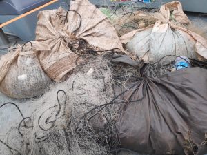 Redes de pesca apreendidas.