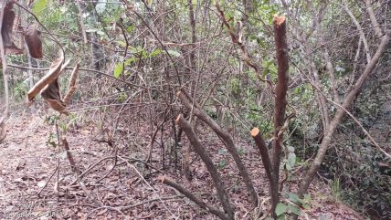 Vegetação derrubada à margem do córrego.