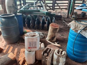 Além disso, na fazenda que fica no Distrito de Piraputanga dentro da Área de Proteção, os Policiais verificaram o armazenamento inadequado de agrotóxicos. Foram encontrados vários galões de agrotóxicos espalhados no solo dentro de um galpão, com riscos de contaminação. Havia galões cheios, e com restos de do produto perigoso no local que era aberto com livre acesso de pessoas e animais, desrespeitando, inclusive, as bulas das próprias embalagens, bem como as normas técnicas e a legislação ambiental.