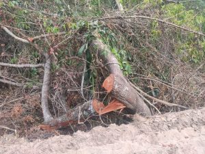 Uma das árvores derrubada.