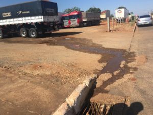 Efluentes lançados ao solo e escoando para a galeria pluvial,