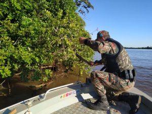 Campo Grande (MS) – Policiais Militares Ambientais de Batayporã realizam fiscalização nos rios Paraná, Bahia, Ivinhema e afluentes nos municípios de Angélica, Batayporã, Ivinhema e Nova Andradina e autuaram hoje (11) um pescador por pesca ilegal e apreenderam e retiraram dos rios diversos petrechos ilegais de pesca.