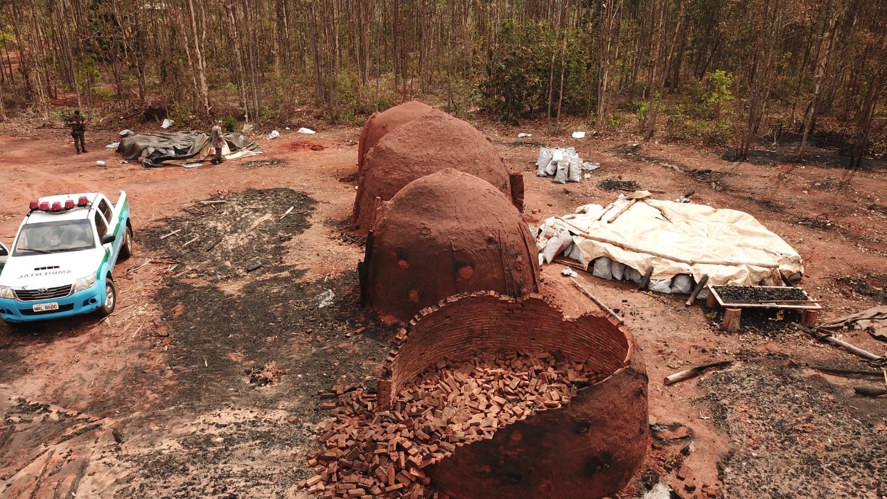 Os Policiais realizaram a aferição da área atingida pelo fogo com uso de equipamento de GPS, que totalizou 22 hectares de área de pastagem. Eles verificaram também que o proprietário da carvoaria, que funcionava com cinco fornos, não possuía licença ambiental da indústria e nem do carvão que estava em processamento nos fornos. O infrator, que é proprietário de um lote no assentamento, confirmou que o incêndio teve origem do forno que desmoronou e se propagou por outros lotes.
