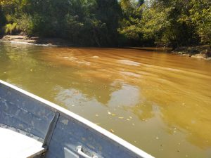 Turbidez da água do córrego provocada pelo sedimento da erosão.