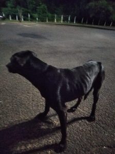 Campo Grande (MS) – Uma equipe da Polícia Militar Ambiental de Campo Grande passava pelo Parque dos Poderes ontem (1) às 21h00 e percebeu um cachorro aparentando desnutrição e com alguma dificuldade de locomoção. A equipe conseguiu capturar o animal e o levou ao quartel, no Parque das Nações Indígenas. O cachorro apresentava certa desnutrição e alguns ferimentos que poderiam indicar um atropelamento de pouca gravidade. Apesar do estado do animal, a PMA calcula que ele possa ter fugido de alguma residência da região há algum tempo e estar perdido. Porém, infelizmente, também pode ter sido abandonado.