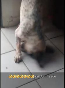 Campo Grande (MS) – Uma equipe de Policiais Militares Ambientais tomou conhecimento, por meio de denúncia, sobre um cão que teria sido embriagado com cerveja por seu tutor em uma residência, na cidade de Cassilândia. O denunciante informou e enviou à equipe, vídeos e fotos com o animal passando mal devido ao álcool consumido, estes que foram postados em um grupo de WhastsApp causando revolta. No vídeo o homem fornece a bebida alcoólica ao cão e, em seguida, mostra o estado de desorientação do animal (embriaguez).