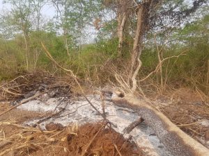 Incêndio em leiras e coivaras, inclusive, de árvores de grande porte.