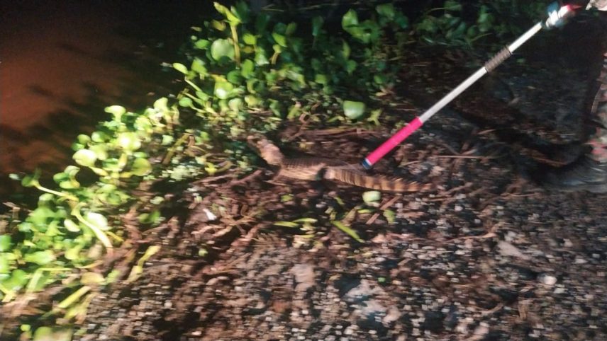 Uma equipe foi ao local verificou tratar-se de um réptil da espécie Caiman yacare (jacaré-do-pantanal e o capturou com uso de cambões. Como o jacaré não apresentava ferimentos, a equipe o transportou para um local distante da cidade e realizou a soltura em seguida em seu habitat natural no Pantanal.