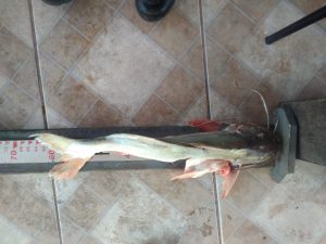 Durante abordagem a uma chalana de fibra em que estava o pescador amador, os Policiais verificaram que ele havia capturado e matado um peixe da espécie dourado, pesando 4 kg, que está com pesca proibida pela Lei Estadual nº 5,321, de 10 de janeiro de 2019 e mais um espécime de barbado, pesando 2 kg. O pescado, um molinete com vara utilizado na pesca ilegal e a chalana e o motor foram apreendidos.