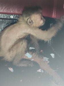 Campo Grande (MS) – Policiais Militares Ambientais de Corumbá autuaram um homem de 55 anos, por manter em cativeiro um animal silvestre da espécie macaco-prego (Sapajus libidinosus) sem autorização ambiental. A autuação deu-se, depois que os Policiais foram comunicados ontem (9) sobre a presença do animal, à rua Major Gama, no bairro Aeroporto, por uma funcionária da Secretaria Municipal de Meio Ambiente e Turismo. Segundo ela, crianças brincavam com o animal em frente a uma residência e, quando a funcionária afirmou que iria recolhê-lo, foi ameaçada pelo homem que se dizia proprietário do animal.