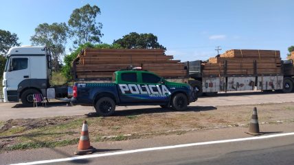 Campo Grande (MS) – Duas empresas transportadoras, respectivamente, com domicílio jurídico em Itajaí (SC) e Pelotas (RS) foram autuadas administrativamente pela PMA, por transporte ilegal de madeira. Os Policiais Militares Ambientais de Coxim foram acionados ontem (30), pela Polícia Rodoviária Federal (PRF) do posto da BR 163, naquela cidade, que reteve dois caminhões tractor, marca Scania com reboques e semi-reboques acoplados, carregados de madeira nativa serrada, com suspeita que estaria sendo transportada ilegalmente.