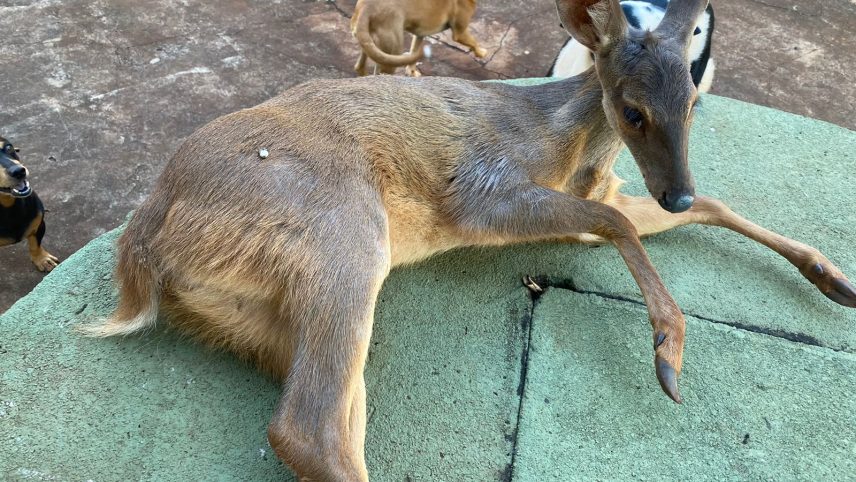 A equipe foi ao local e verificou tratar-se de um animal silvestre da espécie Mazama gouazoubira (veado-catingueiro), que estava com vários ferimentos. O animal foi imediatamente encaminhado ao Centro de Reabilitação de Animais Silvestres (CRAS), em Campo Grande, para tratamento e a possível reintrodução à natureza.