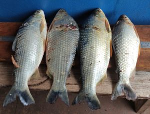 No acampamento, os Policiais localizaram, quatro exemplares de peixes da espécie curimbatá capturados com fisga (petrechos proibidos) e um exemplar de peixe da espécie pintado com o tamanho ao inferior permitindo, além de uma rede de pesca, petrecho proibido com grande poder de depredação de cardumes. O pescado e os petrechos foram apreendidos.