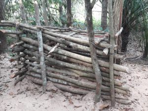 Abordados os homens e apreendida a arma calibre 22 que estava com 10 munições e que não tinham documentos, os Policiais seguiram uma trilha de onde os infratores saíram e encontraram uma armadilha para captura de animais confeccionada em madeira, bem como uma “ceva” na qual os caçadores haviam acabado de colocar milho para atrair os animais silvestres e abatê-los. Próximo à ceva havia um local para a “espera” dos bichos. Foram apreendidos mais facões e facas que seriam utilizados para carnear os possíveis animais abatidos.