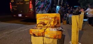 Em três caixas de achocolatados que estavam na bagagem de um boliviano de 40 anos foram encontrados mais 3 kg de cocaína. Ainda em revista ao ônibus, os Policiais encontraram em uma sacola mais 4,428 kg de cocaína em caixas de achocolatados. Não foi possível identificar o traficante proprietário da sacola. Ao total foram 7,928 kg de drogas apreendidos.