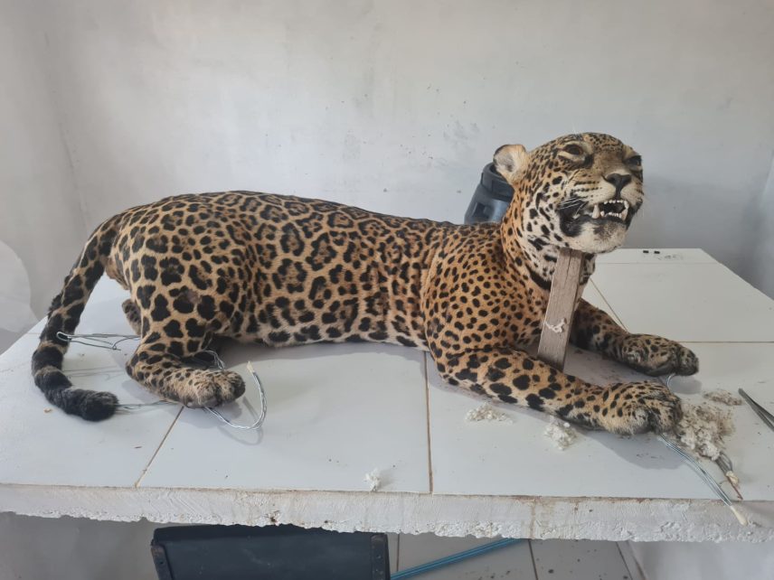 Campo Grande (MS) – Mesmo com as atividades educativas realizadas pela PMA, muitos animais continuam sendo atropelados na rodovia BR 262, inclusive, predadores de topo de cadeia alimentar. No dia 27 de janeiro deste ano, a Polícia de Miranda recolheu um animal silvestre da espécie onça-pintada (Panthera onca), de 105 kg, na altura do Km 625, a aproximadamente 70 km da cidade de Miranda. Este animal foi taxidermizado (empalhado) nesta semana e será utilizado nos trabalhos de Educação Ambiental da PMA.