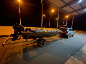 Campo Grande (MS) – Policiais Militares Ambientais de Mundo Novo realizavam trabalhos preventivos e repressivos aos crimes ambientais, especialmente à pesca predatória neste início de abertura da pesca e prenderam na noite de ontem (5) dois pescadores amadores por pesca predatória. Eles foram abordados na BR 163, no município de Eldorado, quando estavam em um veículo Jeep Renegade, com um semirreboque puxando uma lancha com motor de popa cobertos por uma lona.