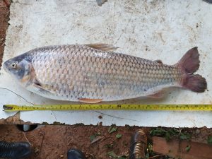 Um dos exemplares de pescado apreendidos.Com o infrator foram apreendidos o pescado, um barco, um motor de popa e uma carretilha com vara utilizada pelo pescador. Ele foi autuado administrativamente e foi multado em R$ 750,00. A Pesca sem licença não é crime ambiental. Trata-se apenas de infração administrativa. Pagando a multa, o infrator poderá ter o material apreendido restituído à exceção do pescado.