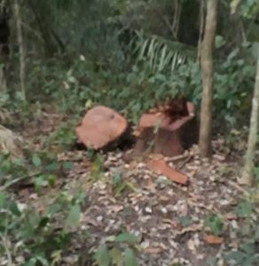 Toco de árvore derrubada.