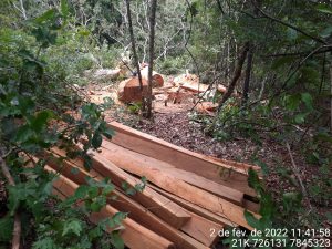 Polícia Militar Ambiental de Rio Negro autua infrator em R$ 2,4 mil por derrubada de árvores para exploração de madeira e apreende toras, tábuas e estacas de madeira ilegal
