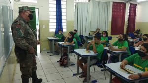 Campo Grande (MS) – Uma equipe da Polícia Militar Ambiental de Rio Negro realizou palestra de Educação Ambiental na Escola Estadual Leontino Alves de Oliveira, localizada na cidade de Rio Negro ontem (7), que contou com a participação de 23 crianças do sexto ano do ensino fundamental. O foco da palestra foi recursos hídricos e a conservação geral do meio ambiente, além de informações sobre fauna e flora local.