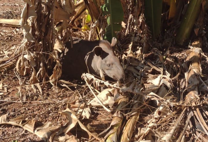 Campo Grande (MS) – O proprietário de uma fazenda, localizada a 7 km da cidade, acionou os Policiais Militares Ambientais de São Gabriel do Oeste hoje (4) às 8h30, para efetuar a captura de um animal silvestre da espécie Tapirus terrestris (anta), que apareceu na propriedade. Segundo o comunicante, o animal apareceu nas proximidades da sede da propriedade e ele percebeu que o bicho colidia com construções, árvores e tudo à sua frente, dando sinal de que aparentemente não tinha visão.