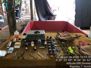 Devido à grande quantidade de materiais, a PMA solicitou apoio ao 9º Batalhão, responsável pelo policiamento da área. Os Policiais verificaram no local várias esporas, biqueiras artificiais e gaiolas, onde eram mantidos os animais. Gaiolas de madeira e de ferro extremamente apertadas, especialmente as de madeira, com restrição de movimentos, privação de luz solar e circulação aérea inadequada, o que, por si só, caracteriza-se maus-tratos. No momento chovia e verificou-se que os galos que estavam em gaiolas de ferro também ficavam expostos às intempéries. Todo o material foi apreendido.