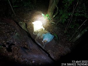 A equipe também utilizando um gancho pela água na margem do rio na região em que o pescador estava praticando a pesca predatória, encontrou uma rede de pesca que ele também havia armado. Todo o material foi apreendido. Operação dessa natureza é fundamental, pois se este elemento tivesse mais tempo e encontrasse um cardume, mesmo sozinho, com esses tipos de petrechos ilegais com alto poder de captura, conseguiria dizimar rapidamente um cardume.