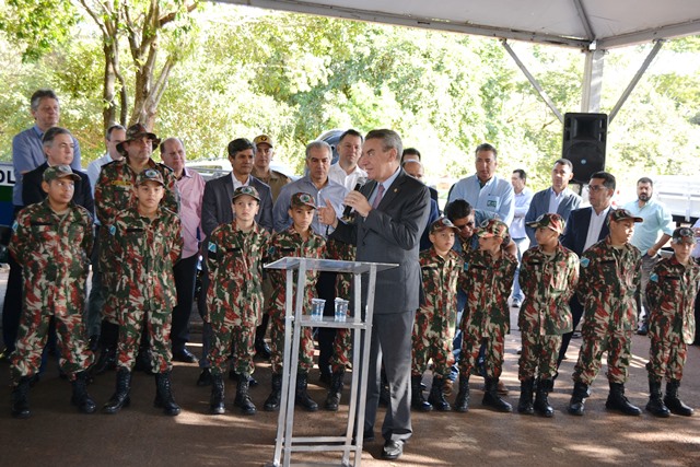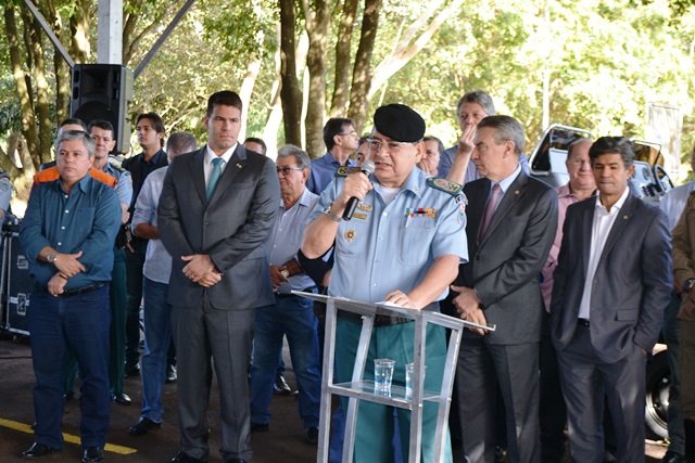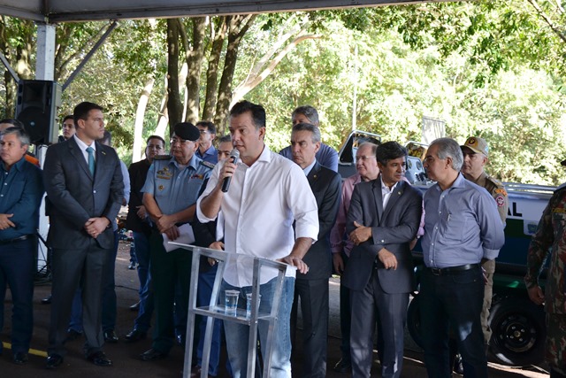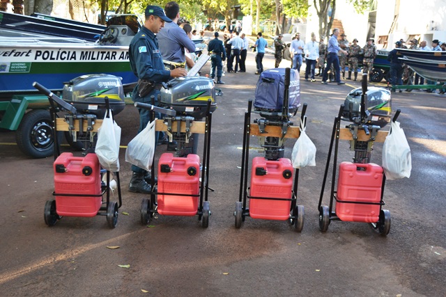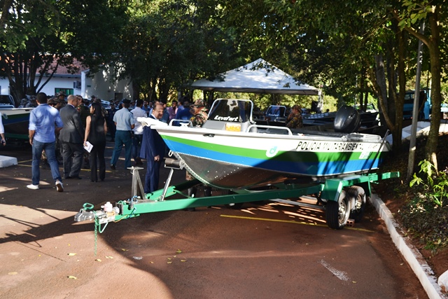O comandante-geral, coronel QOPM Waldir Ribeiro Acosta destacou os investimentos do atual governo na segurança pública através de diversas entregas de materiais, contribuindo para redução dos índices criminais, também houve pronunciamentos do governador Reinaldo Azambuja, do secretário de Estado de Justiça e Segurança Pública, Antonio Carlos Videira, do prefeito de Jardim, Guilherme Monteiro (representando os municípios contemplados), do Presidente da Assembleia Deputado Paulo Corrêa. Ao todo 43 equipamentos foram entregues: 01 caminhão Ford F4000, 05 reboques de 01 eixo, 07 reboques de 02 eixos, 02 barcos 19 pés, 05 barcos 17 pés, 06 barcos 5.90m 30 hp 6, 03 barcos 5.90m 40 hp 3, 02 motores de popa 150 hp, 05 motores de popa 60 hp, 02 motores de popa 30 hp, 05 motores de popa 15 hp, os equipamentos totalizam 1.063.250,00 reais.