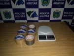 No veículo, foram encontrados 04 tabletes de maconha. Com a insistência dos policiais por mais informações sobre o droga encontrada, o autor, acabou apontando um endereço próximo dali, onde segundo ele, teria mais entorpecente escondido. Realizada a busca no imóvel, mais 265 tabletes de maconha, apetrechos de separação em embalo, além de uma balança de precisão, foram localizados.