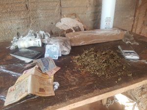 Também foi encontrado um tablete e meio de maconha, balança de precisão, R$206,00 dinheiro e no quintal vários pés de maconha. Ele confessou que a boca de fumo funcionava há cerca de 15 dias e teria adquirido o entorpecente em Campo Grande.
