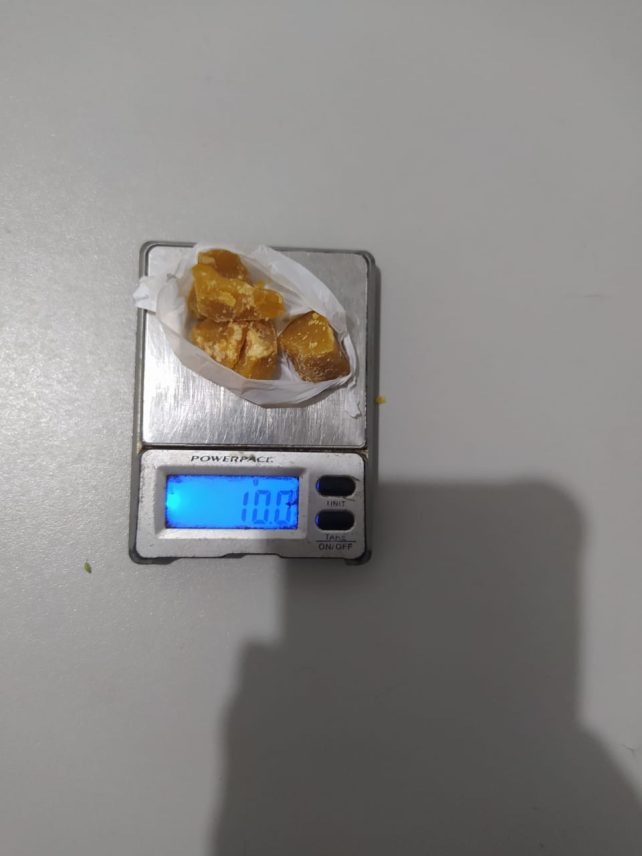 Durante a abordagem os policiais não encontraram nada com o adolescente, no entanto, constataram que o objeto lançado ao chão era um invólucro contendo cinco pedras de crack (10g), as quais fracionadas dariam cerca de 40 trouxinhas. O adolescente estava numa bicicleta e ao ser indagado sobre a procedência da droga, acabou entrando em contradição.
