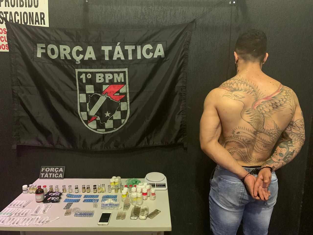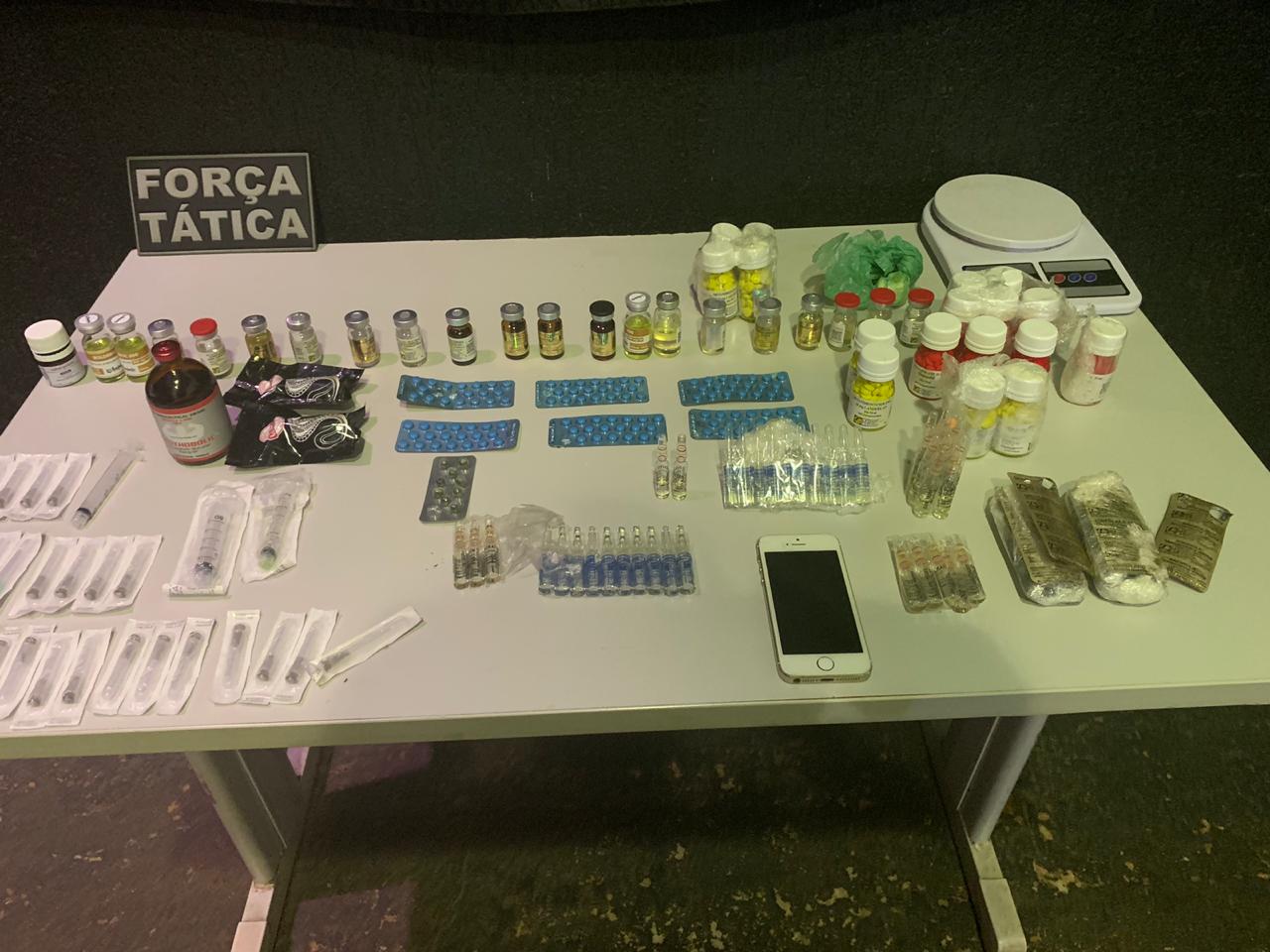 Durante as 24 horas de policiamento, policiais do 1º Batalhão, apreenderam diversos medicamentos anabolizantes que seriam revendidos de forma ilegal, apreenderam 51 comprimidos de ecstasy, 6 gramas de maconha e 67 gramas de cocaína, e conduziu seis autores para delegacia os quais foram autuados em flagrante delito pelas autoridades policiais de plantão.