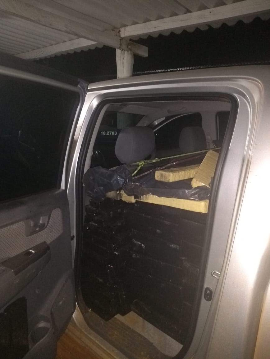 A Equipe vistoriou o veículo com placas de Rio Grande-RS e constataram que a mesma estava abarrotada de Maconha em seu interior e também na carroceria. Foi realizado um cerco na tentativa de localizar o indivíduo, porém, não houve êxito em capturá-lo. O segundo veículo não foi localizado