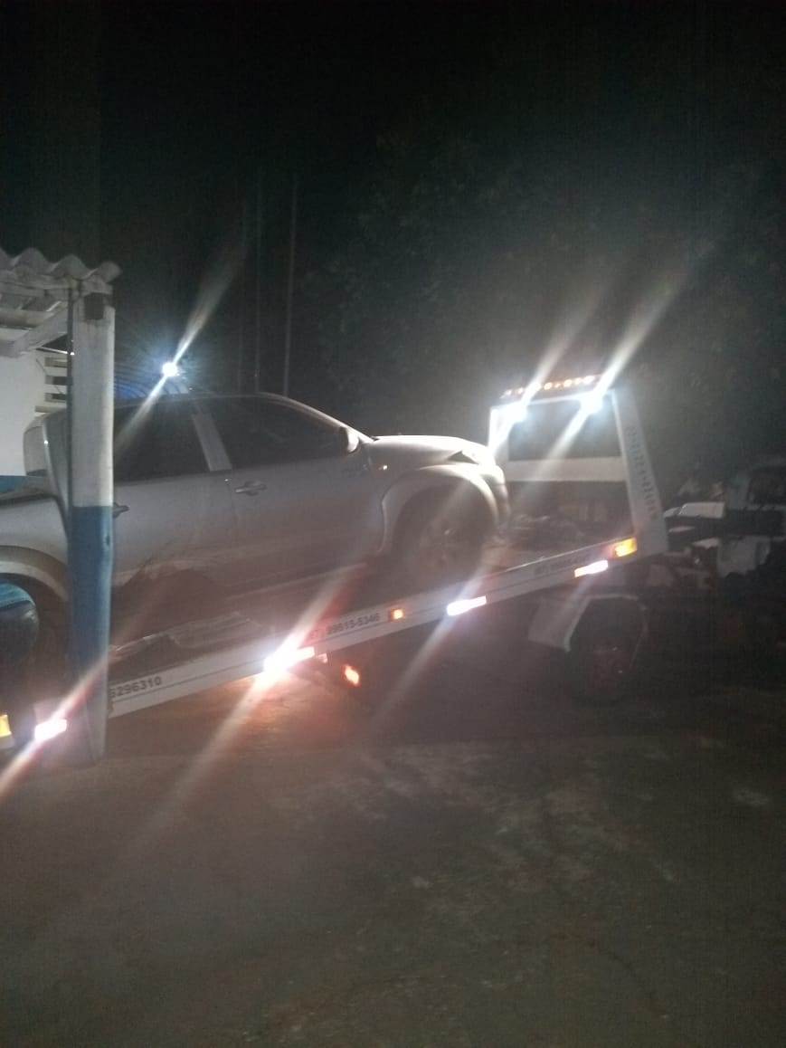 Os policiais foram acionados via 190 por um trabalhador rural que relatou que dois veículos, sendo um VW Gol e Uma Toyota Hilux, estavam parados em atitudes suspeitas nas proximidades de uma fazenda a 48 quilômetros da cidade. Os militares de posse das características dos veículos deslocaram imediatamente para o local e ao chegarem, avistaram a referida Caminhonete e perceberam quando um indivíduo saiu correndo e fugiu em meio à vegetação quando avistou a Viatura.