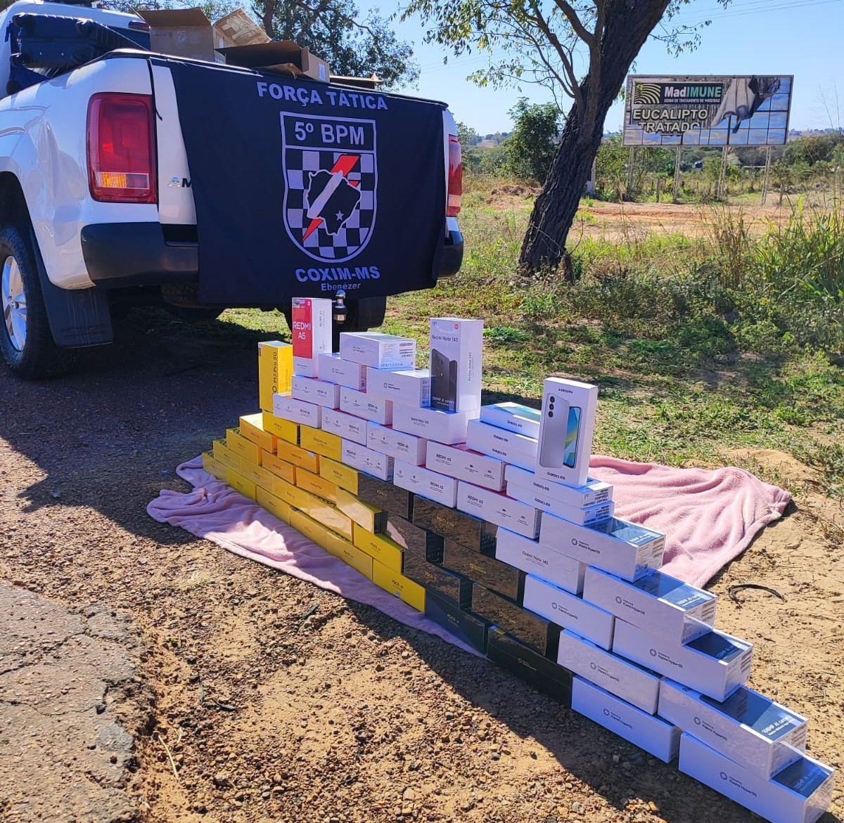 Coxim (MS) – Na manhã desta quinta-feira (14), a Polícia Militar, por meio da guarnição da Força Tática, apreendeu uma carga de celulares contrabandeados avaliada em mais de R$ 72,8 mil após revenda, durante a Operação Saturação em Coxim.