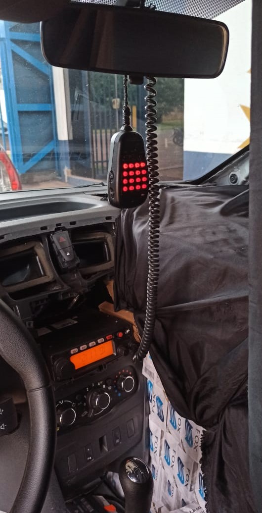 - Radio comunicador no interior do Renault Logan, carregado com cigarros.