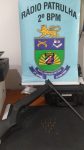 No local a equipe visualizou os veículos envolvidos no acidente, e em seguida iniciaram as buscas para encontrar a arma usada que havia sido dispensada nas proximidades. Logrando êxito em encontra-la escondida em meio a vegetação, sendo uma espingarda de pressão, porém foi verificado que a mesma havia sido modificada e adaptada para o calibre .22. Estando com 01 (uma) munição .22 deflagrada. Em busca pessoal a um dos condutores envolvidos foi encontrado no bolso de sua bermuda 09 (nove) munições calibre .22 intactas. O autor reportou que adquiriu a arma de um desconhecido, no intuito de se defender.