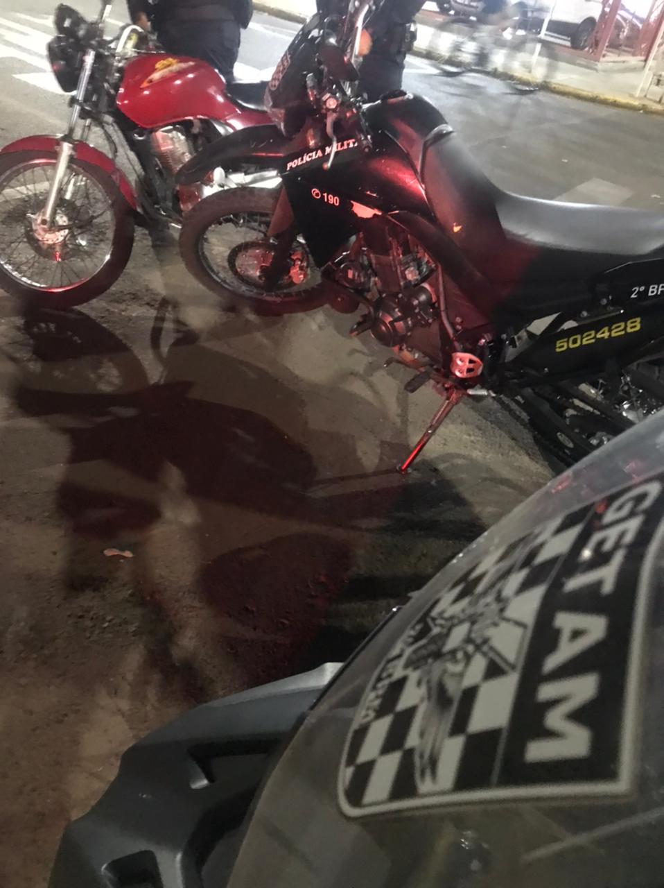 Após abordagem, foi constatado que o condutor era um indivíduo menor de idade e, diante dos fatos, foram elaboradas notificações de trânsito, sendo a motocicleta encaminhada para o pátio do DETRAN, e o menor infrator conduzido a DEPAC para providências cabíveis.