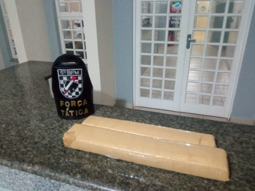 A Guarnição da Força Tática realizava policiamento na Avenida Federal no Bairro Piracema, quando realizaram abordaram no veículo tipo van que fazia transporte de passageiros. Os militares realizaram busca no interior do veículo e localizaram embaixo do banco do suspeito, dois tabletes de maconha em uma bolsa, que totalizaram 1.900 Kg.