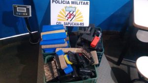3ª CIPM Amambai – No início da tarde desta terça-feira (25), a equipe de Rádio Patrulha da Unidade Policial Militar de Coronel Sapucaia avistou um utilitário Hyundai Tucson que acessava o lado brasileiro em alta velocidade, vindo da linha internacional, com a intenção de seguir pela Rodovia MS 289. Diante da atitude suspeita, os policiais realizaram acompanhamento tático e o abordaram. Havia dois ocupantes no veículo, um deles de 35 anos conseguiu fugir para o lado Paraguaio, e o outro, que era o condutor, de 24 anos, foi preso. Durante checagem a equipe constatou que o veículo era produto de furto no estado de São Paulo e em vistoria localizaram, em fundos falsos, 102 quilos de maconha, que estava divida em vários tabletes.