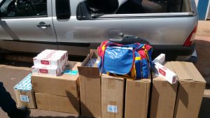 A guarnição tentou abordá-lo, porém o mesmo empreendeu fuga com o veiculo em alta velocidade, avançou três placas de PARE e ainda trafegou na contramão de direção de uma via de sentido único. O referido condutor abandonou o veiculo na rua Giusepe Verdi em frente ao numero 10 e tomou destino ignorado. A guarnição ao localizar o veiculo encontrou no seu interior 411 (quatrocentos e onze) pacotes de cigarros. Diante dos fatos o veiculo foi removido ao pátio do DETRAN e a mercadoria foi apreendida. BO e mercadoria foram encaminhados aos órgãos competentes.
