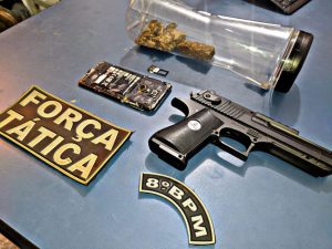Nova Andradina (MS) – A Polícia Militar do Estado do Mato Grosso do Sul, através da equipe de Força Tática do 8º Batalhão de Polícia Militar apreendeu na noite de quarta-feira (29) um simulacro de arma de fogo tipo pistola que foi localizada em uma kitnet localizada na Rua Walter Hubacher. Os policiais militares realizavam o policiamento ostensivo e preventivo pelo Bairro Guiomar Soares quando visualizaram um indivíduo conhecido no meio policial pela prática de roubo na cidade e região, forçando o portão de um estabelecimento comercial. Diante da atitude suspeita, foi dada voz de abordagem ao autor, que pegou seu celular rapidamente e o quebrou em duas partes.