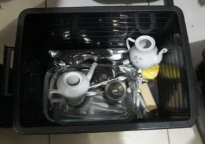 Policiais militares lograram êxito em abordar os suspeitos com idades entre 29 e 37 anos, e com eles foram localizados 02 (duas) caixas plásticas contendo utensílios domésticos tais como: talheres, taças, xícaras, bules, travessas, além de 02 (dois) cobertores e 01 (uma) mochila de cor verde contendo fios elétricos, todos os objetos bem embalados e em bom estado de conservação.