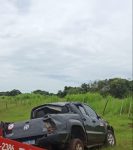 A guarnição rapidamente se deslocou até o local indicado e se deparou com a Caminhonete placas de Ponte Nova/MG que estava capotada no interior de uma propriedade rural. Ao se aproximar do veículo, a Equipe PM se deparou com vários tabletes de Maconha espalhados pelo chão e vários outros ainda dentro do carro.
