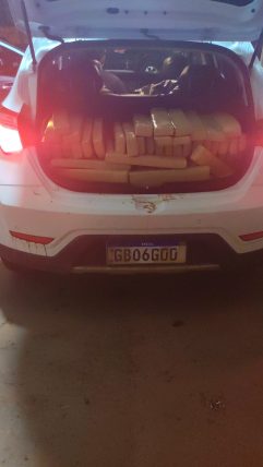Os PMs vistoriaram o veículo e localizaram 392 tabletes de substância análoga à maconha, totalizando 386 kg.