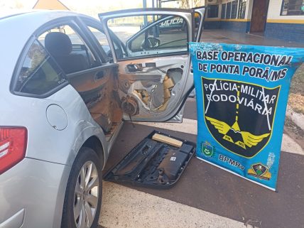 Durante fiscalização na MS-164, os PM abordaram um veículo Citroen/C4, placa de Araras/SP.