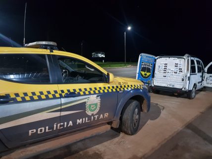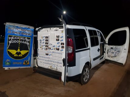 Os PMs realizavam policiamento ostensivo na MS-164 e abordaram um veículo Fiat/Doblô, cor branca, placa de São Paulo/SP.