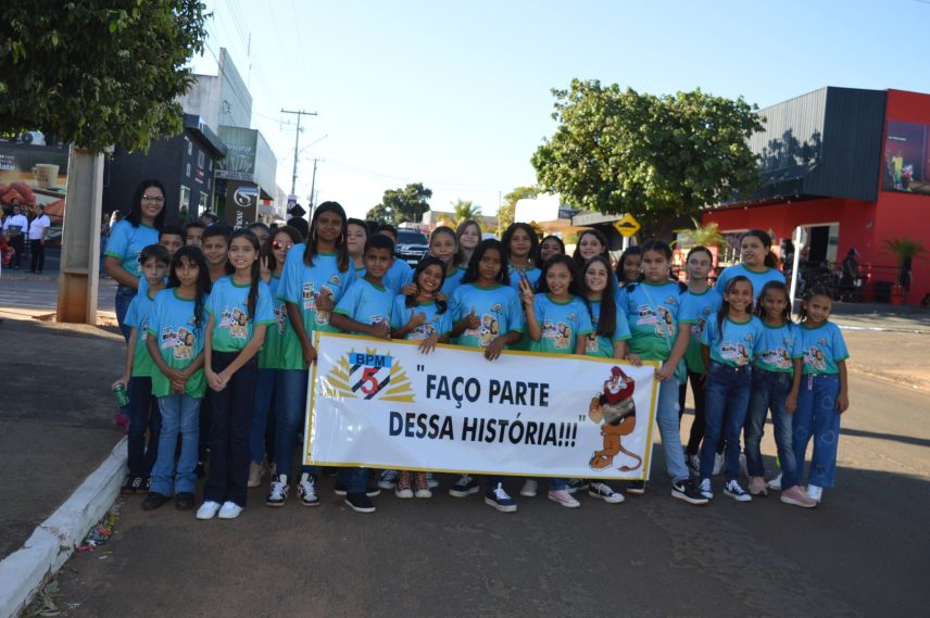 Coxim (MS): A Polícia Militar participou na tarde de hoje (03/06), do Desfile Cívico em comemoração aos 35 anos de Sonora com alunos do Proerd (Programa Educacional de Resistência às Drogas e à Violência) e Patrulha Mirim.
